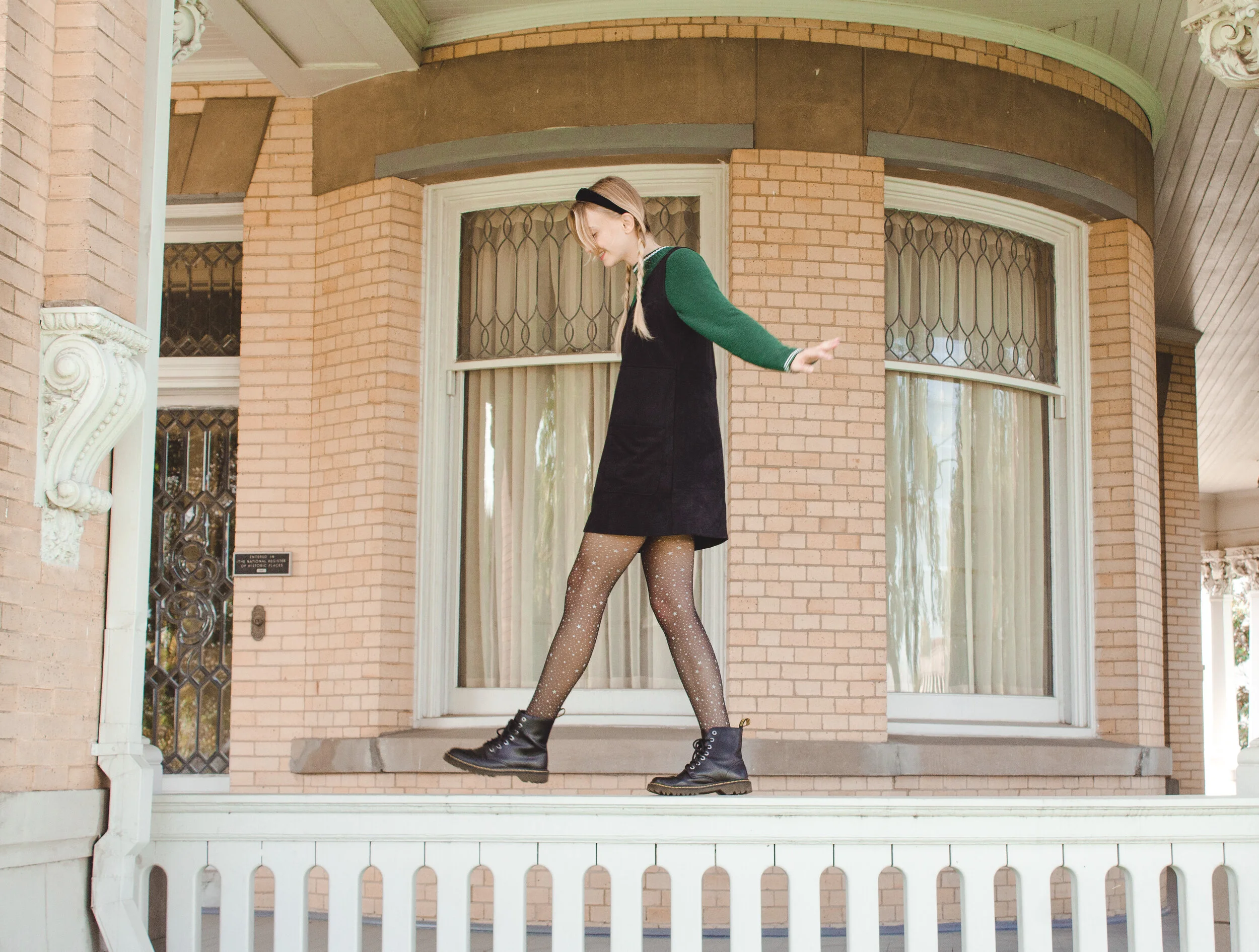 To layer under the dress, I went with an emerald sweater, modeled after the color palette of Winifred in Hocus Pocus.